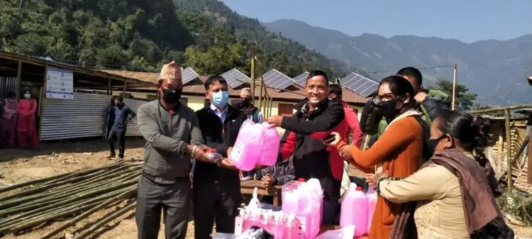 Covid-19 is now at your door. We can't run away from it but we can learn how to live with it and over come it. It is just a simply applying the preventive measures. In order to teach Syuba students, HIS Nepal has proved IEC(Information, Education and Communication) and distributed masks and Sanitizers to 9 school of Likhu-Tamakoshi RM Ward no-1. 4 water tanks also installed and tougth the students and teachers how to live with the Covid-19 and overcome on it.